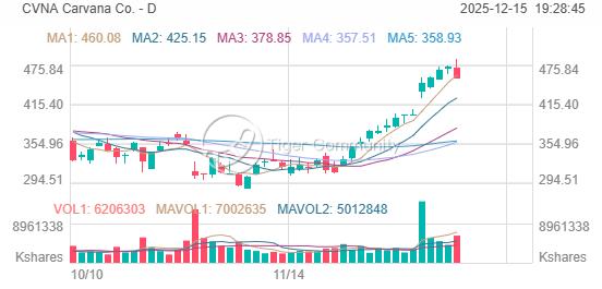 CVNA closed at $455.68 on December 15th, down -3.61% (-$17.05) from previous close of $472.73.