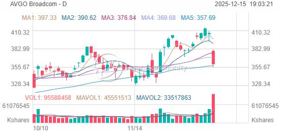 AVGO closed at $359.93 on December 15th, dropping -11.43% (-$46.44) from previous close of $406.37.