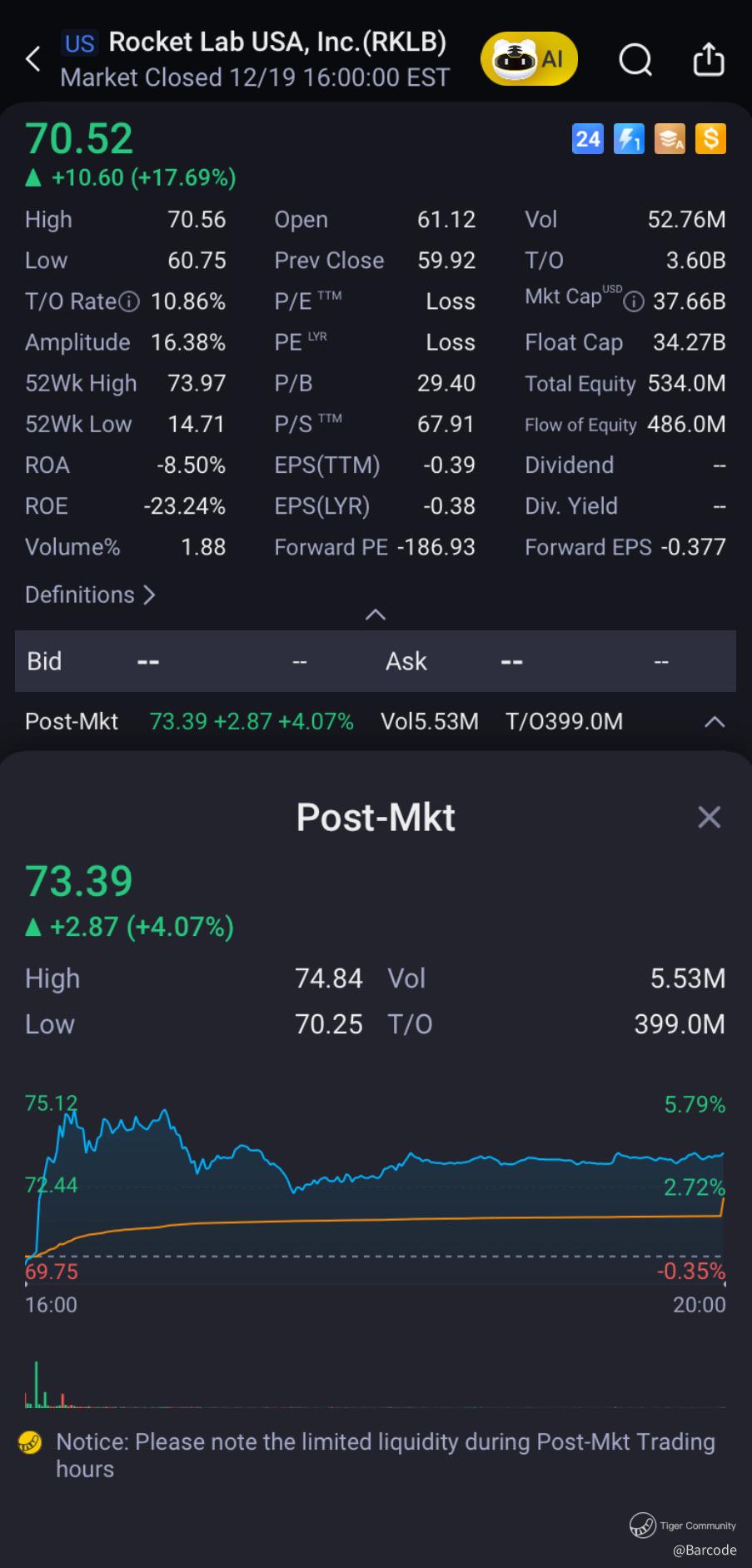 Iโm watching RKLB print new all-time highs in after-hours trading following the SDA announcement details. Volume expanded into the move and price held despite thinner post-market liquidity. That behaviour aligns with institutional participation, not just retail enthusiasm.