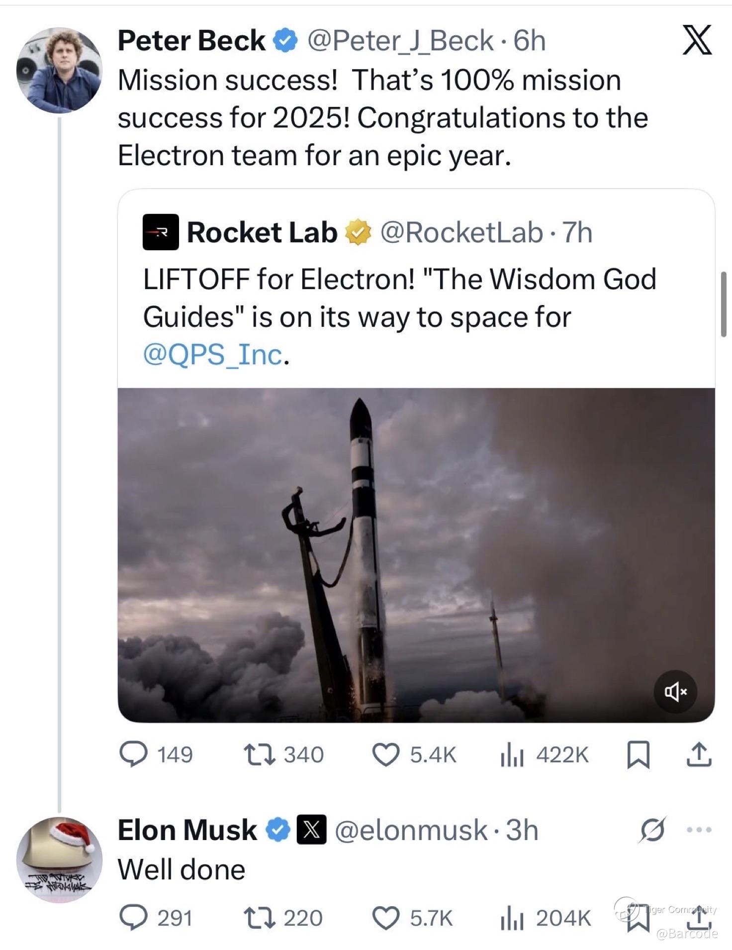 Iโm starting with operations because that is where value is earned in this industry. Rocket Lab has now completed its 21st successful Electron mission this year, with Peter Beck confirming 100% mission success for 2025. Reliability compounds quietly until the market is forced to acknowledge it. Even Elon Musk publicly acknowledging Rocket Labโs execution matters. In aerospace, respect is rarely given early.