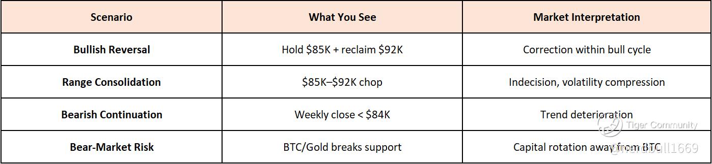 Interpretation rule: If BTC rallies but fails below $92K and rolls over → bear-market rally / distribution behavior.