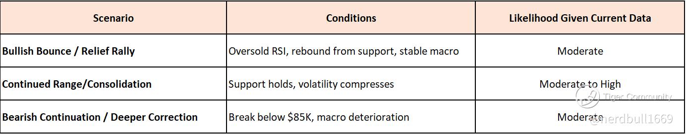 Probability: A short-term break below support — especially around $85K — is a meaningful risk and would likely increase volatility.