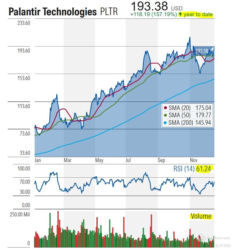 03 Nov : PLTR hits record high of $207.18 - $207.52.