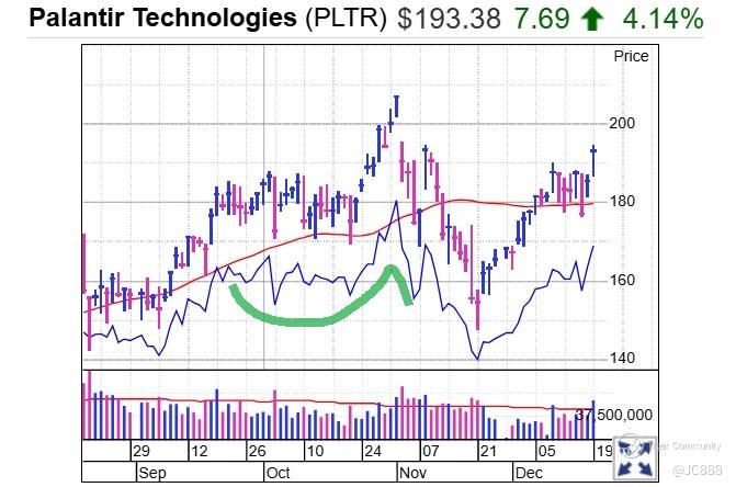 On Fri, 19 Dec 2025, PLTR broke out above the $190.39 buy point of a cup-with-handle base. (see above, green outline)