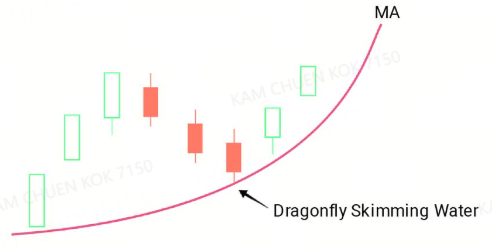 5. Dragonfly Skimming Water: Brief Pullback in Uptrend