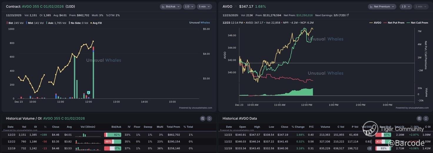 Thatβs why the timing of long-dated $PLTR calls alongside aggressive $AVGO upside flow is so important. Hardware continues to absorb capital, but software duration is starting to price the downstream payoff.