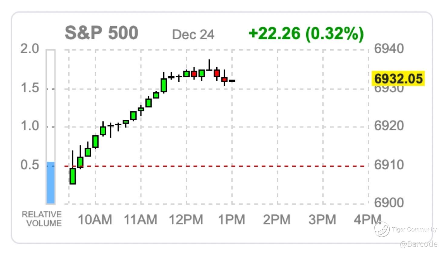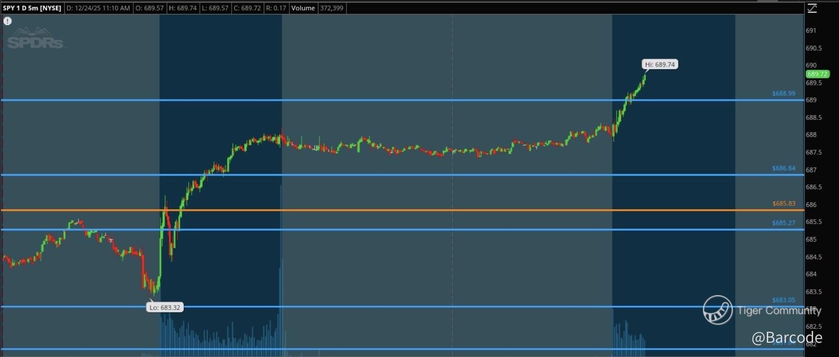 π $SPX confirmed with another record close on Christmas Eve. The $DJI and $IXIC also finished higher for a fifth straight session, while $VIX fell below 14 for the first time in a year. This is a relaxed volatility regime, not a stressed one.