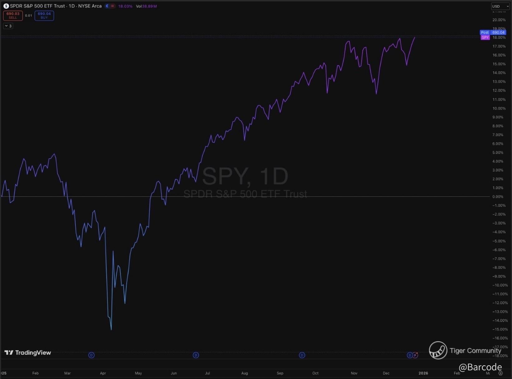 π $SPY is now up over 18% YTD and over 39% since April 8.