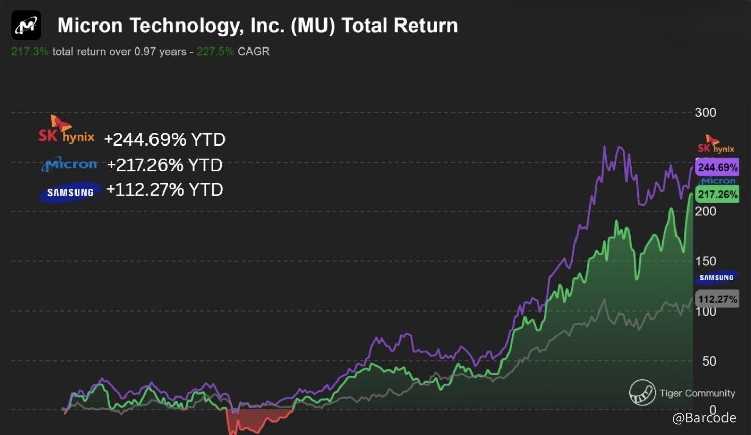 π§ The confirming signal comes from the AI supply chain, led by Micron Technology ($MU).