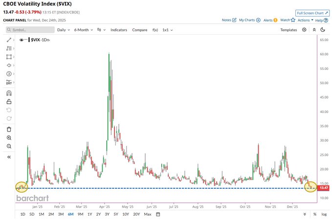 CBOE Volatility Index $VIX falls to its lowest level this year 🚨 No Fear left in the market 🫡