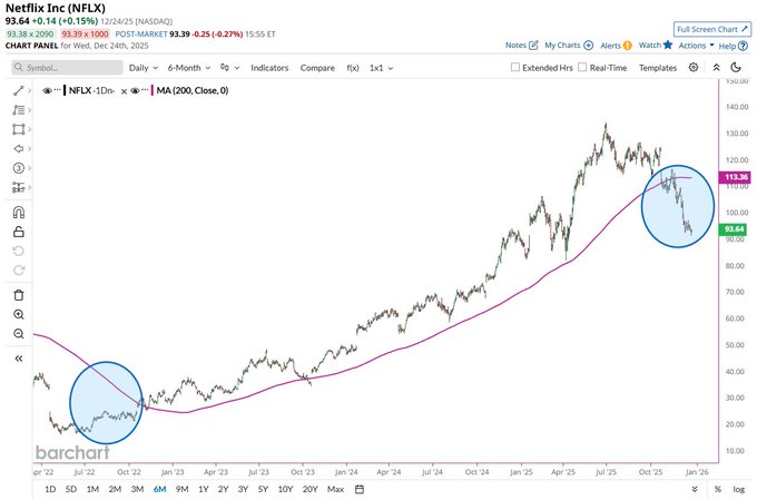 Netflix $NFLX is trading below its 200-day moving average by 18%, the most in more than 3 years 🤯👀