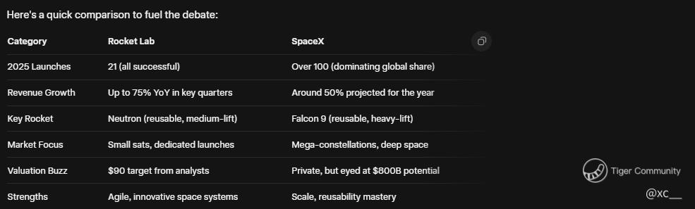 On the flip side, SpaceX remains the undisputed kingpin. Their Falcon 9 is a workhorse, with hundreds of launches under its belt and reusability that's redefined economics. Starlink's constellation alone drives massive demand, while Starship pushes boundaries for Mars ambitions. Yet, Rocket Lab's agility shines in dedicated small-payload rides, avoiding the backlog plagues of bigger players. Morgan Stanley even dubbed them an "earlier-stage alternative," highlighting diversification needs in a tense geopolitical landscape. Both are thriving, but Rocket Lab's stock has skyrocketed 211% year-to-date, trading around $77βpoised for that $90 leap if Neutron nails its milestones. π