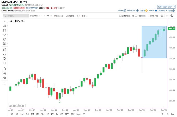 1. S&P 500 $SPDR S&P 500 ETF Trust(SPY)$ on track for its 8th consecutive green month, its longest winning streak since 2017/18 ππ₯³π€π«