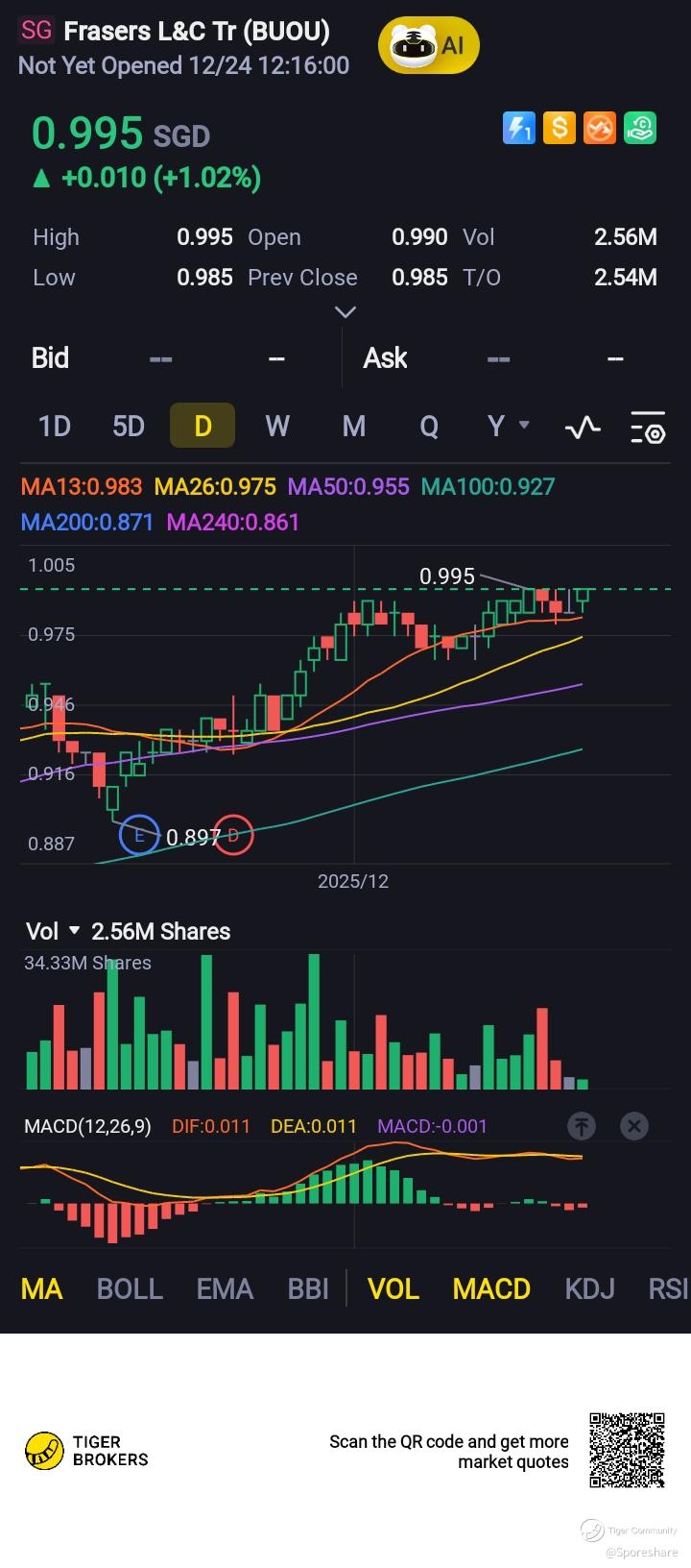 Frasers L&C Tr - Closed higher at 99 cents, looks rather positive!