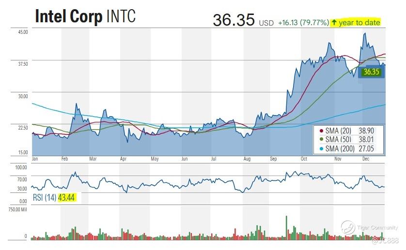 On the eve of Christmas eve, INTC closed down at $36.35 per share.