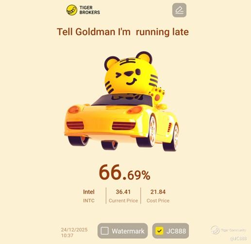 $Intel(INTC)$ : On 22 Aug 2025, US government bought a 9.9% stake. By late October 2025, INTC has surged by +77%.