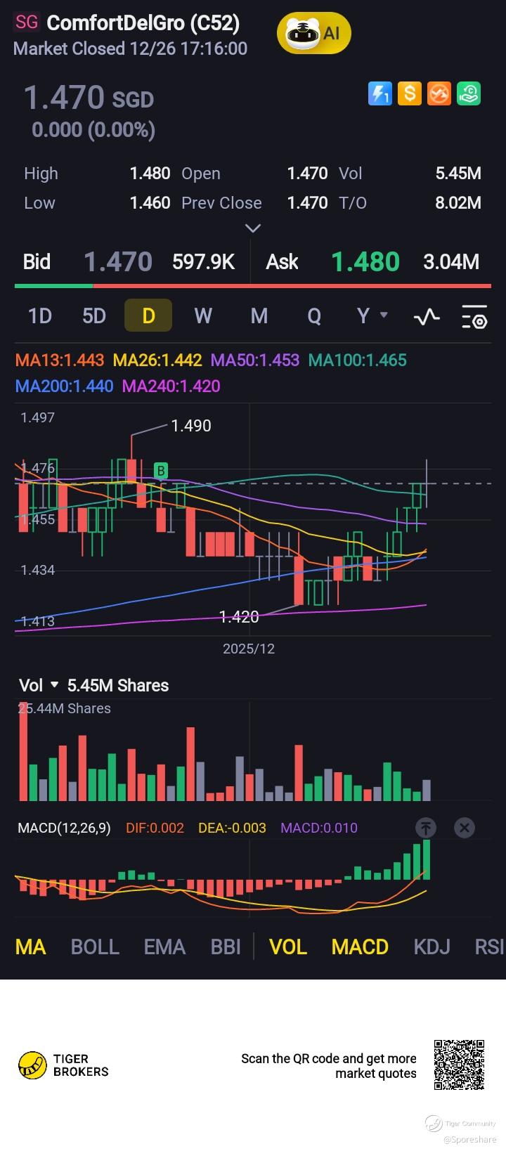 ComfortDelGro - She is slowly climbing higher, looks rather positive! She may test 1.50 soon! Beyond, 1.50, she may rise up further towards 1.55 than 1.60. Pls dyodd.