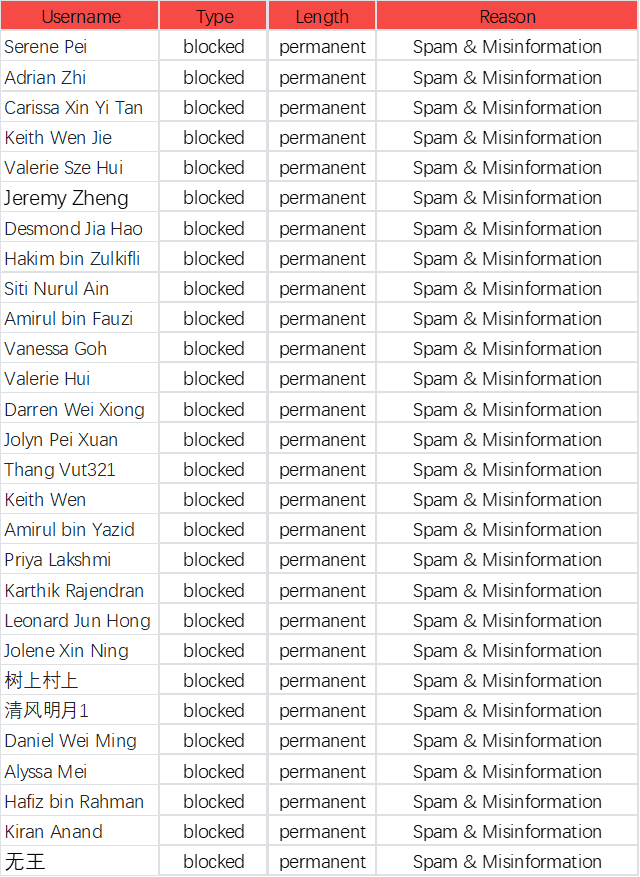 Here is the List of Banned Users Recently: