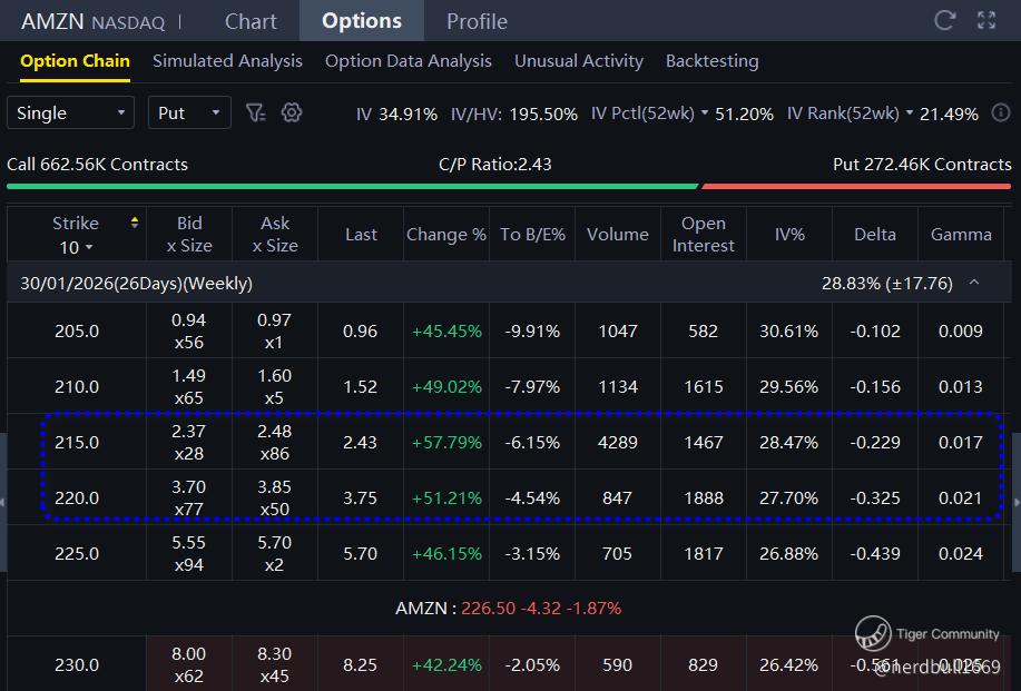 Leg 2 (Long): Buy to Open 1 AMZN 30 Jan 26 $215 Put.