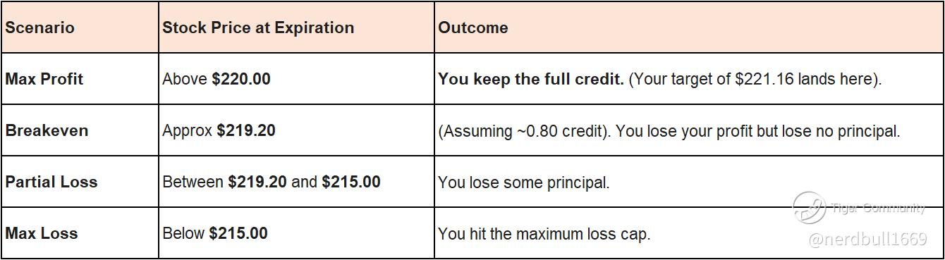 Note: Given the current price of ~$226.50, these puts are Out-of-the-Money. The credit will likely be moderate (estimated around $0.80 - $1.20 per share depending on volatility).