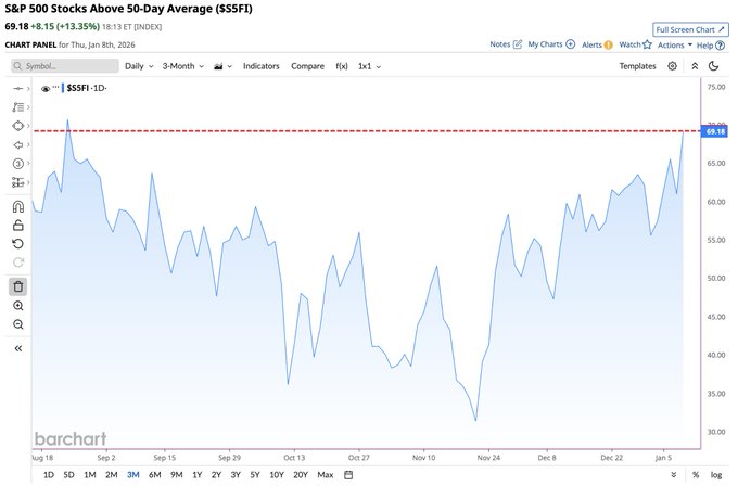 1.69% of S&P 500 $S&P 500(.SPX)$ stocks are now trading above their 50-day moving average, the strongest market breadth since August ✅