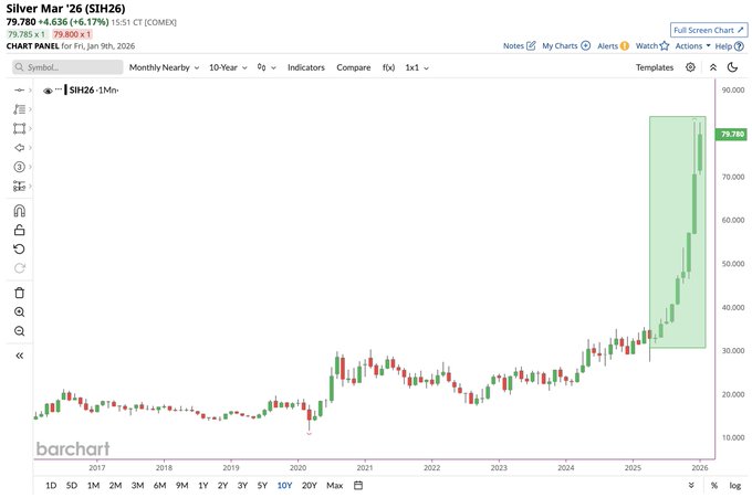 4.Silver $Silver - main 2603(SImain)$ on track for 9 consecutive green months, which would be its longest winning streak in history 🚨📈🤑
