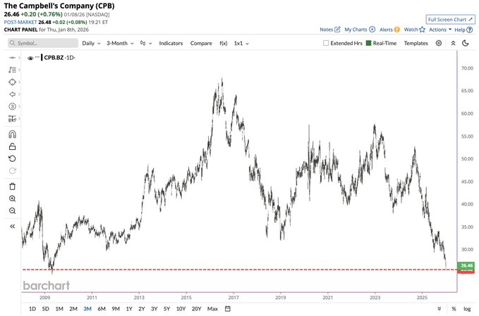 2.Campbell's Soup $Campbell Soup(CPB)$ fell to its lowest price since the Global Financial Crisis 📉😱