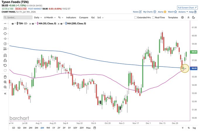 Tyson Foods $TSN forms a Golden Cross ✅