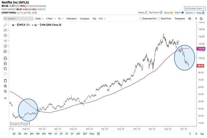 Netflix $NFLX is trading below its 200-day moving average by 21%, the most in more than 3 years 🤯👀