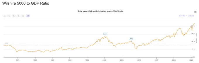 4.Warren Buffett Indicator hits an all-time high of 224%, the most expensive stock market valuation in history 🚨🚨