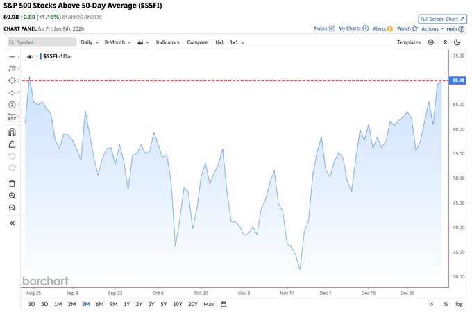 70% of S&P 500 stocks are now trading above their 50-day moving average, the strongest market breadth since August 📈🥳🤑
