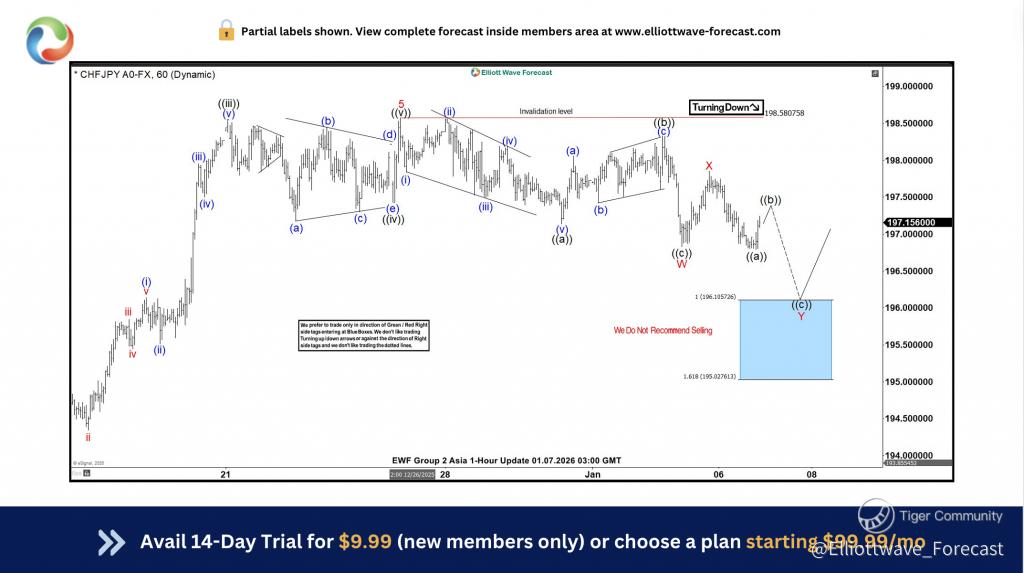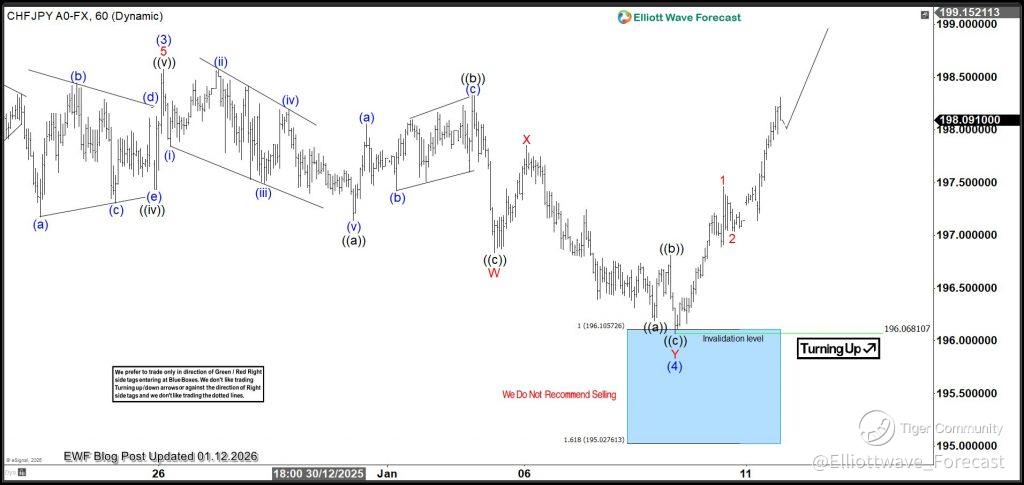 In late December, the pair began to pull back. While some may have considered it time to sell against the trend, we remained focused on buying the pullback. It continued through the last week of December and into the first week of January. On January 7, 2026, we identified the pullback structure as a double three corrective setup. Therefore, we shared the chart below, displaying the blue box, with Elliottwave_Forecast members.