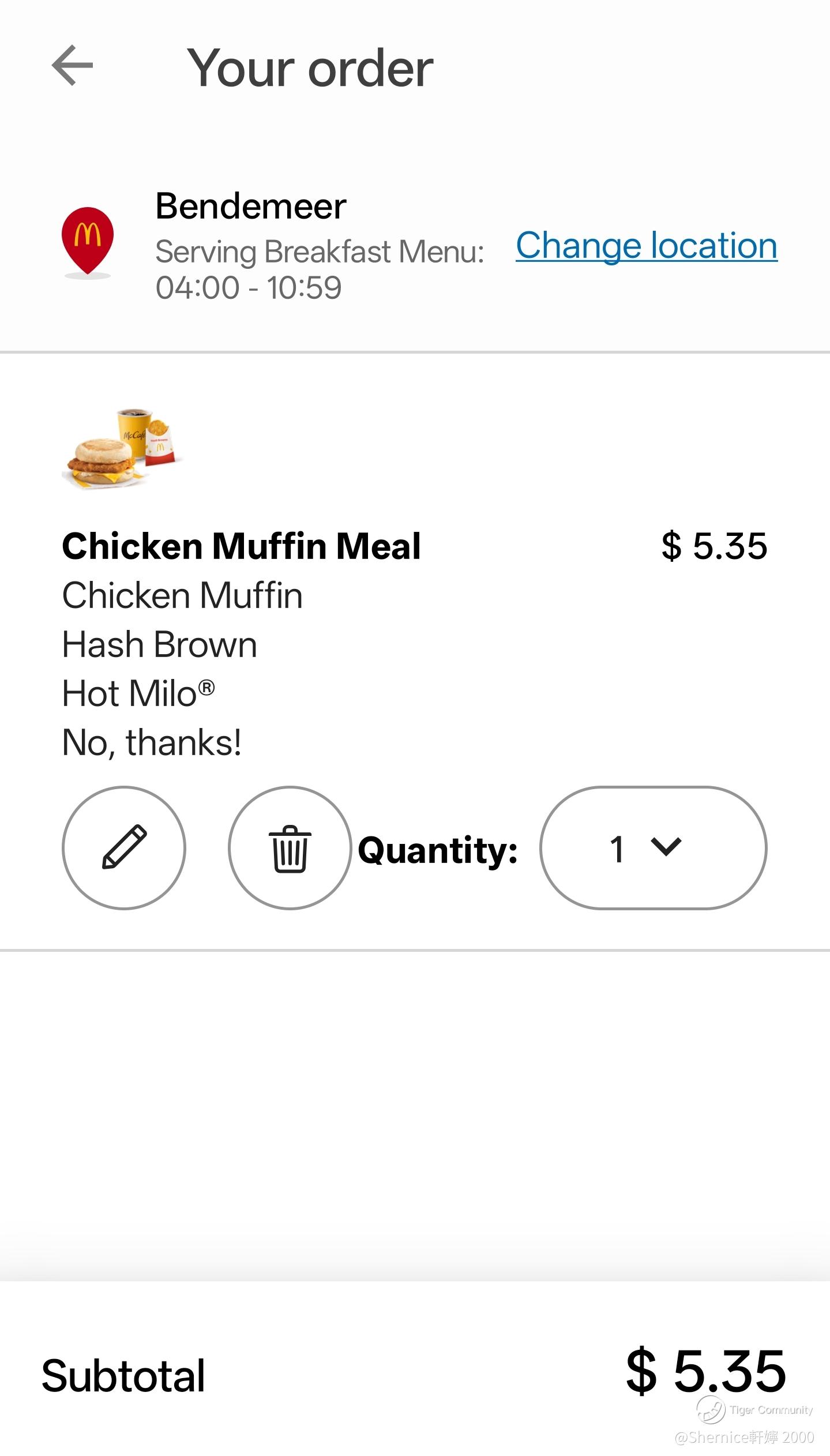 âMcDonaldâs: $5.35 for a Chicken Muffin + Hash Brown + Hot Milo. A whole meal! đ