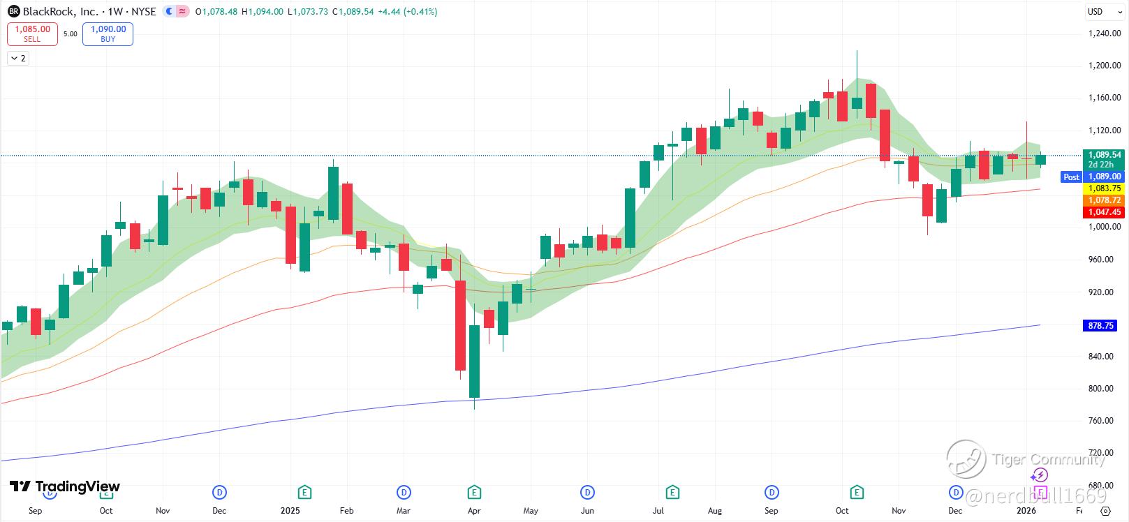 50-Day EMA: Acting as the primary intermediate support at $1,083. BLK has successfully tested this level multiple times in the last two weeks, confirming healthy dip-buying interest.