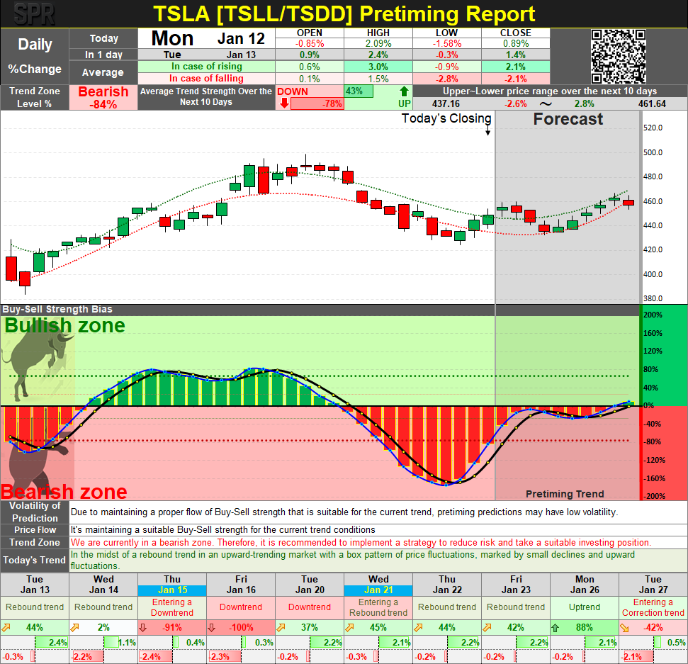 In the short term, TSLA is experiencing a rebound trend inside a bearish market, producing box-pattern swings with mild rises and declines.