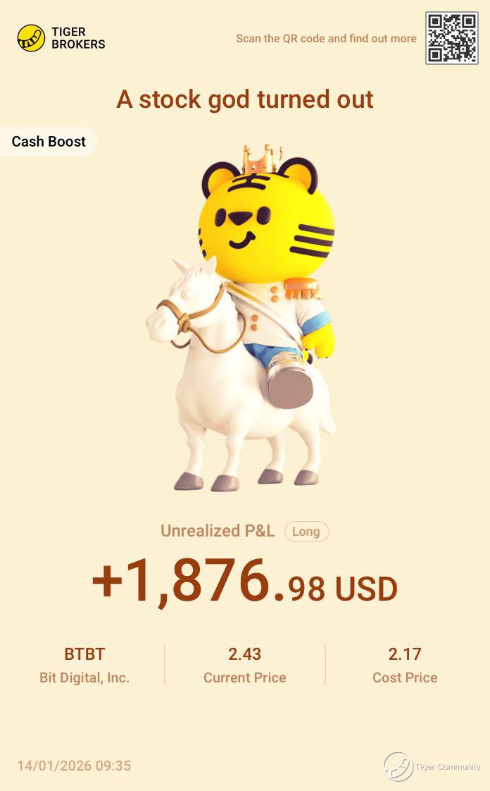 $Bit Digital, Inc.(BTBT)$ is on fire! BTC surges to $56k in early 2026, BTBT jumps 8.33% on Jan 5 + 3.52% on Jan 13, 15%+ gain in two weeks – crypto miner boom delivers big profits!