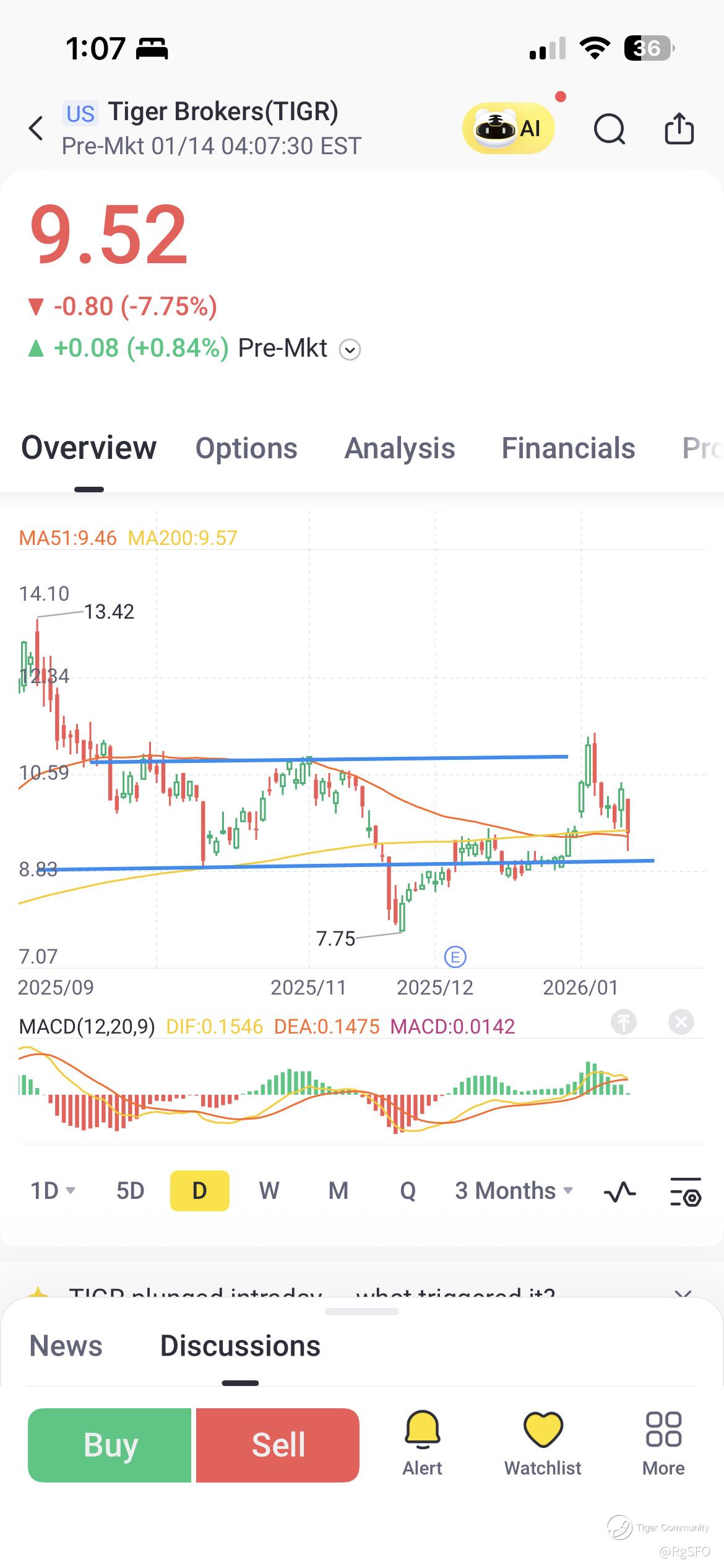 $Tiger Brokers(TIGR)$ 50 day moving average is below 200 day moving average. This generally indicates bearish bias. Recent attempt to rally met with strong sell off near $11. This stock will continue to be hit by short sellers and investors who wants reduce their holding at any attempt to rally until 50 day moving average closes again above 200 day moving average.