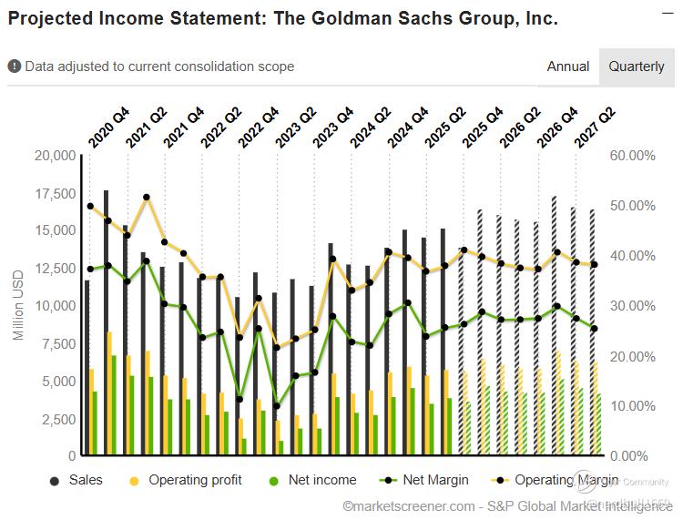 Efficiency and Expenses: A recurring concern is rising compensation and tech costs. Investors will watch the Efficiency Ratio (target 60%) to see if Goldman can scale its revenue without a proportional spike in pay.