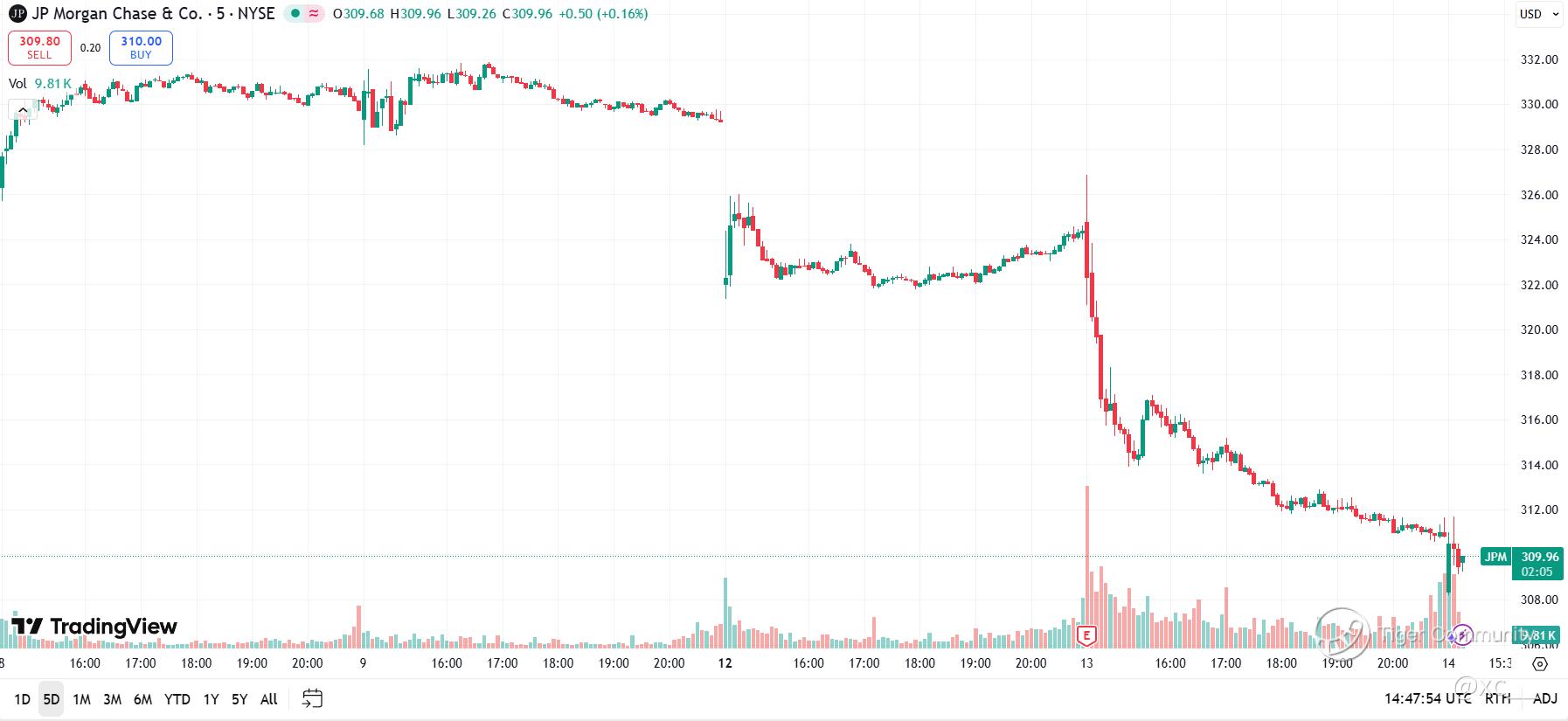As of today, JPM's hovering around $309 β down again! Is this a buying dip for the brave, or the start of a bigger bank bust? Eyes on the rest of earnings season; Wells Fargo and Citi drop next. Buckle up, folks β the rate ride ain't over! π₯π¦
