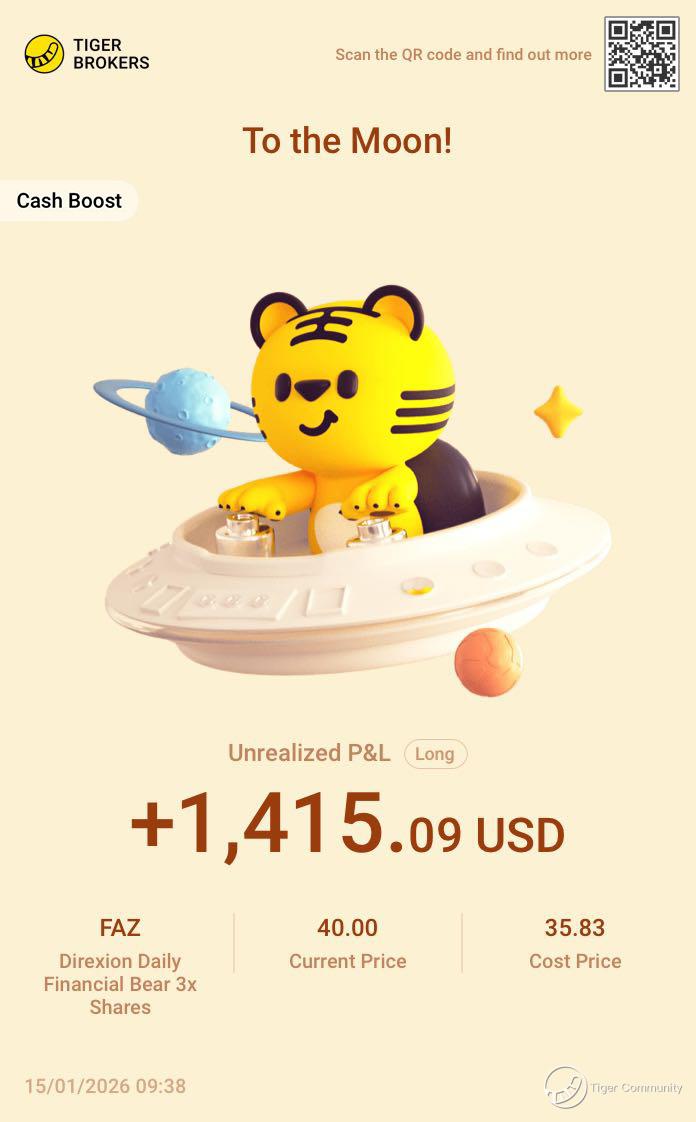 $Direxion Daily Financial Bear 3x Shares(FAZ)$ came through as the hedge play! When markets turned, this inverse ETF delivered. Respecting volatility and staying prepared always pays off.