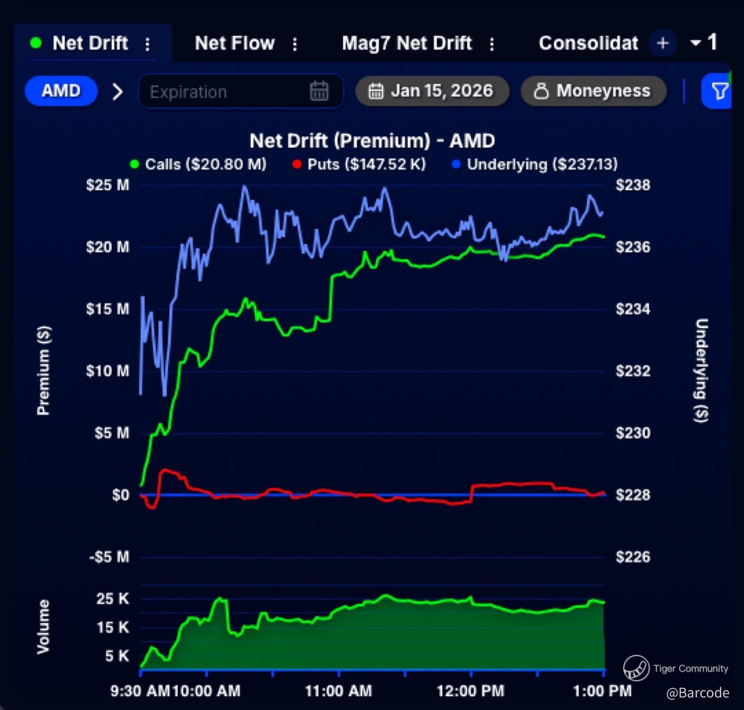 Over $20M+ in single leg calls have been bought on $AMD today alone!