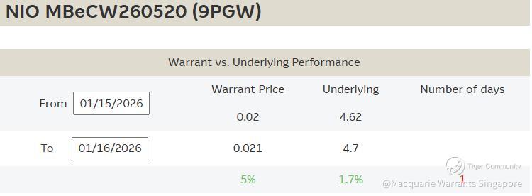 🔼Nio Singapore shares are trading 1.7% higher this morning as of 925AM to USD 4.70 while trending Nio call warrant 9PGW (https://warrants.com.sg/tools/livematrix/9PGW) is up 5% to SGD 0.021.