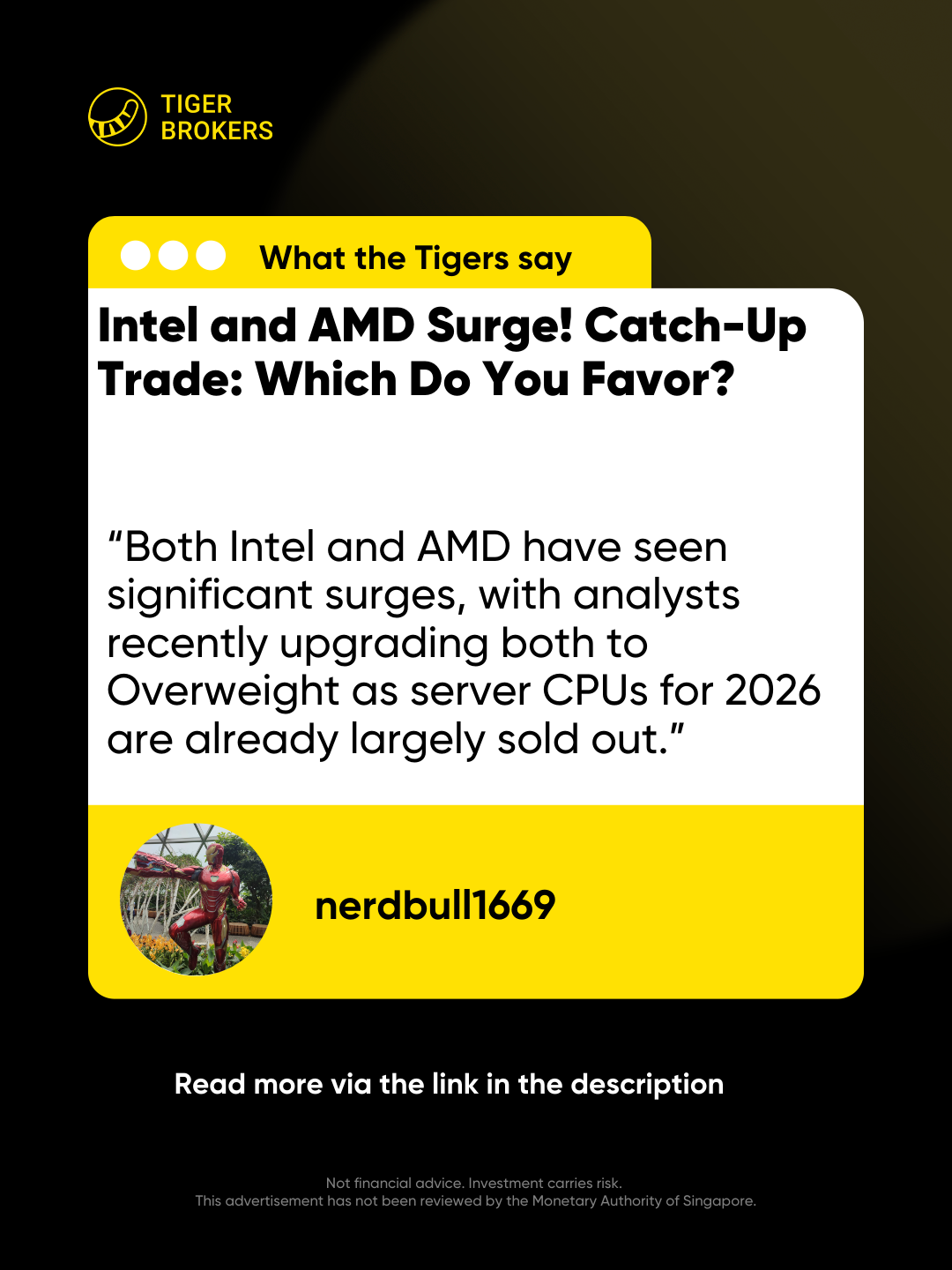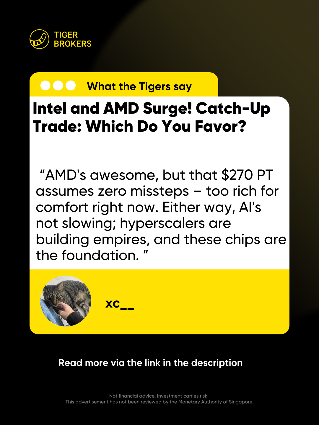 This is a weekly column planned to share the great opinions from Tigers on a specific topic, and today our Theme is $Intel(INTC)$ and $Advanced Micro Devices(AMD)$.
