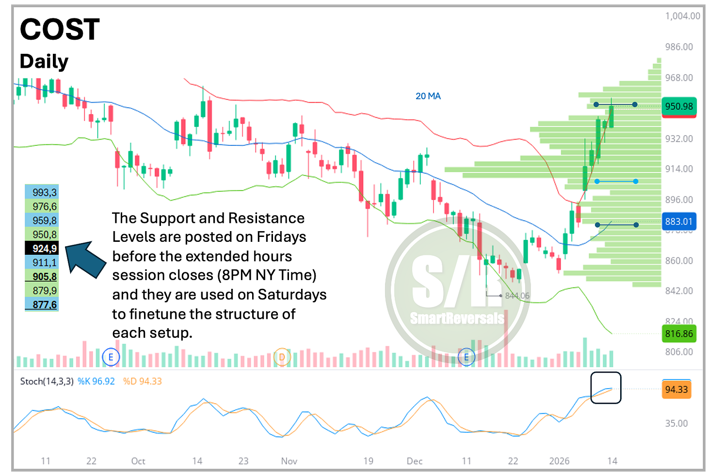Since the price held above the $905.8 Central Weekly Level (CWL), the bullish path was clear by Monday morning. Today, a trader might choose to lock in gains at the target or navigate the move by trailing their stop higher.