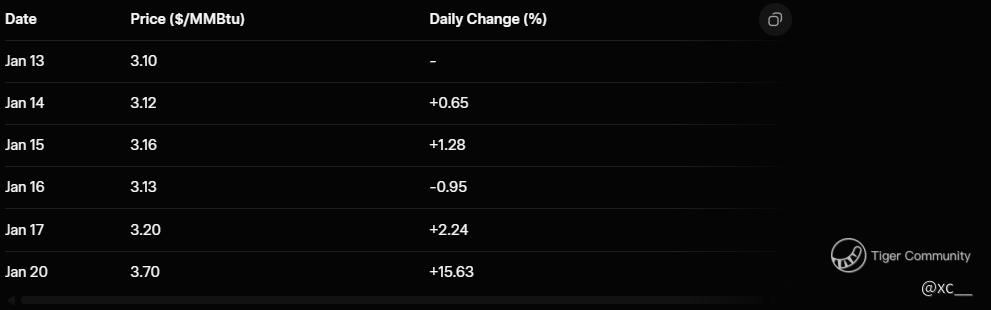 Buckle up, energy watchers β the US natural gas market just delivered a jaw-dropping performance that's got everyone buzzing! π Prices have exploded over 19% in a single day, pushing futures to around $3.7 per million British thermal units (MMBtu). This monster rally marks the largest daily jump since October 2024, turning heads and igniting talks of wild swings across the entire commodities arena. π² Why the sudden blast-off? It's all about that icy grip from Mother Nature β forecasts are screaming Arctic air invasion sweeping into the East Coast and Midwest starting late January, cranking up heating demand like never before. After dipping to a 13-week low of $3.10 last week, this rebound is pure adrenaline for traders! π¬οΈπ¨