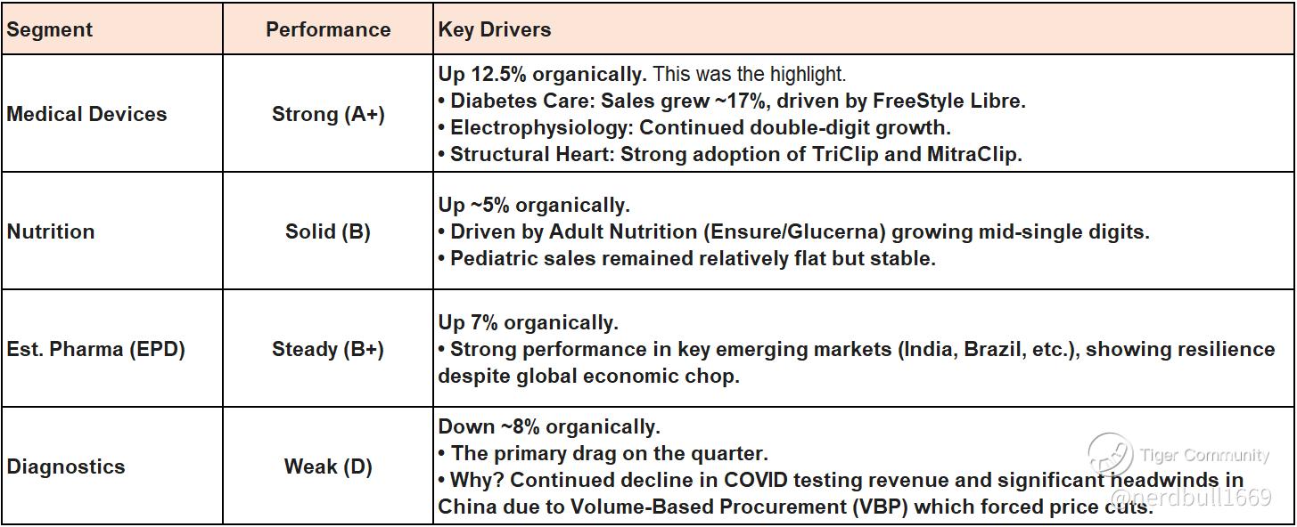 Pediatric Nutrition (Similac): Watch U.S. sales closely. Analysts are currently forecasting a slight decline (~3%). Positive Surprise Potential: If this segment returns to positive growth in the U.S., it would remove a lingering overhang on the stock.