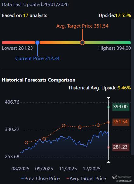 Based on 17 analysts from Tiger Brokers offering 12 month price targets for GE Aerospace in the last 3 months. The average price target is $351.54 with a high forecast of $394.00 and a low forecast of $281.23. The average price target represents a 12.55% change from the last price of $312.34.