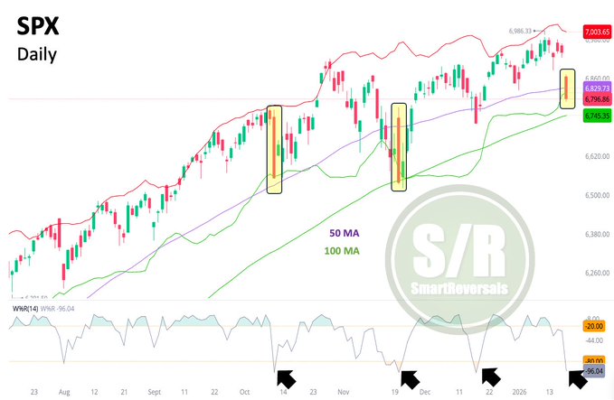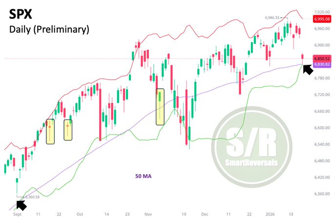 $S&P 500(.SPX)$ : Lower Bollinger Band + 50DMA
