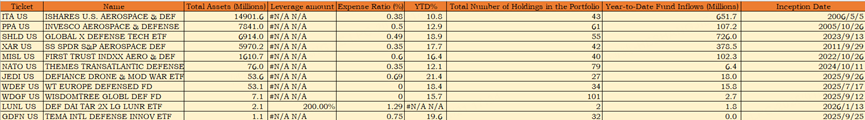 Honestly, no idea what the fund manager was thinking—why make the holdings so concentrated? From this year’s performance alone, ITA has underperformed several other defense ETFs.