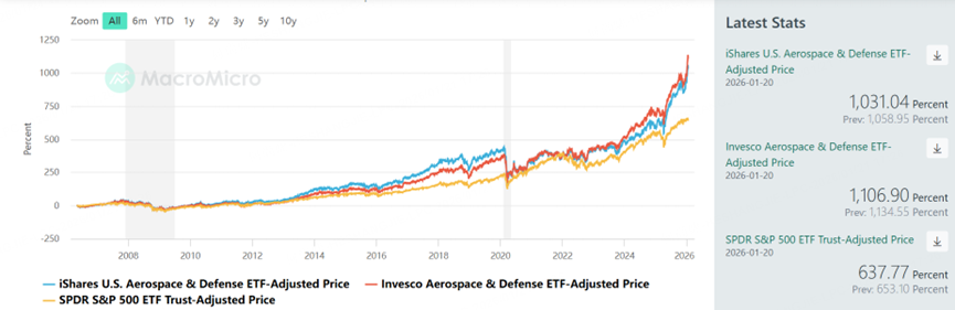 Over the long term, defense ETFs have significantly outperformed the S&P 500 Index, making them excellent long-term investment targets: